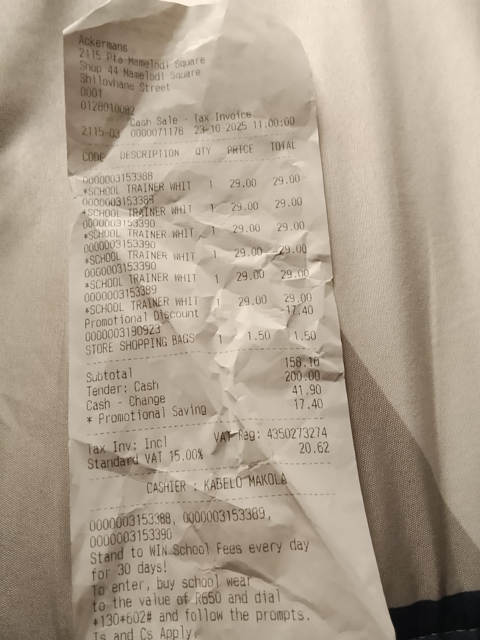 Today was my lucky day I bought 6 pairs of trainers for R158 at Ackermans